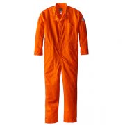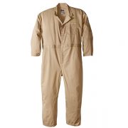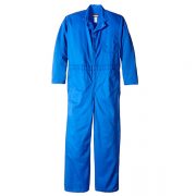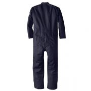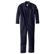 Bulwark Excel FR classic coverall. Fabric made of 9 ounces, twill 100 percent cotton. One-piece, topstitched, lay-flat collar. Two-way concealed Nomex taped brass break-away zipper, concealed snap at top of zipper at neck. Hemmed sleeves. Two set-in front pockets. One chest pocket. Two patch hip pockets. Side vent openings. Home wash and industrial wash.