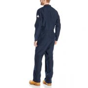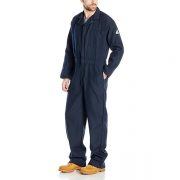 Bulwark Nomex IIIA classic coverall. Fabric made of 4.5 ounces, Nomex IIIA (93 percent Nomex aramid/ 5 percent Kevlar aramid/2 percent other fiber). One-piece, topstitched, lay-flat collar. Concealed, Nomex two-way brass break-away zipper, gripper at top of zipper at neck. Hemmed sleeves. Two set-in front pockets. One chest pocket. Two patch hip pockets. Side vent openings. Home wash and light soil wash.